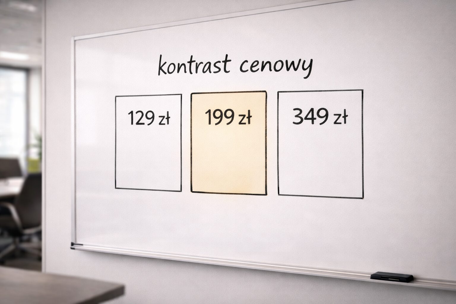 To właśnie efekt kontrastu cenowego. Dajesz klientowi ramy, w których może podjąć decyzję. A Ty decydujesz, gdzie go ten wybór zaprowadzi.